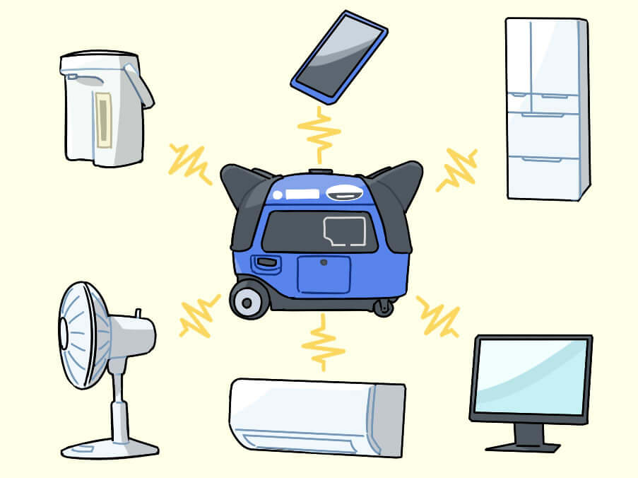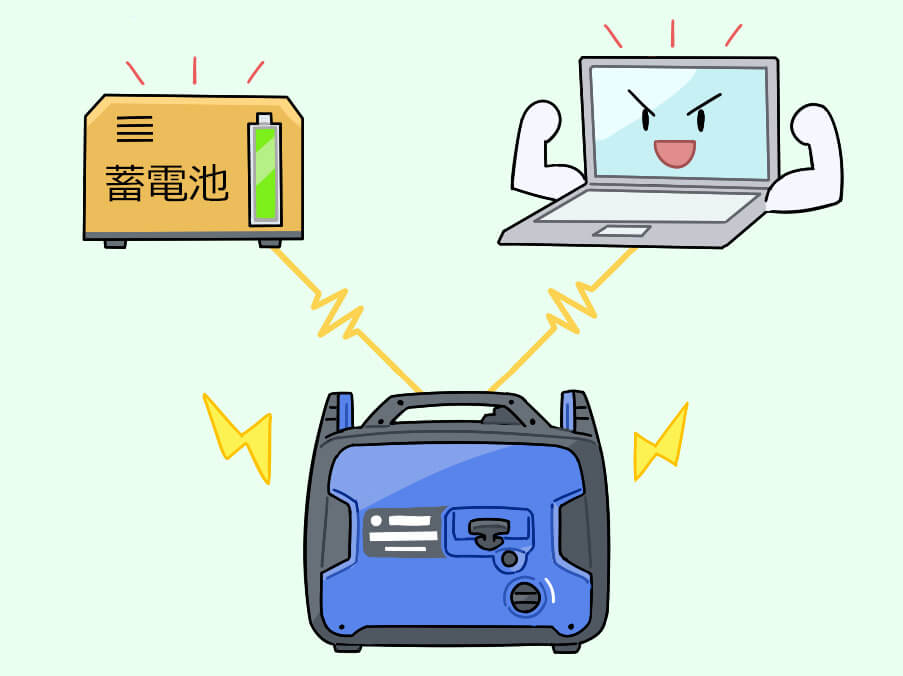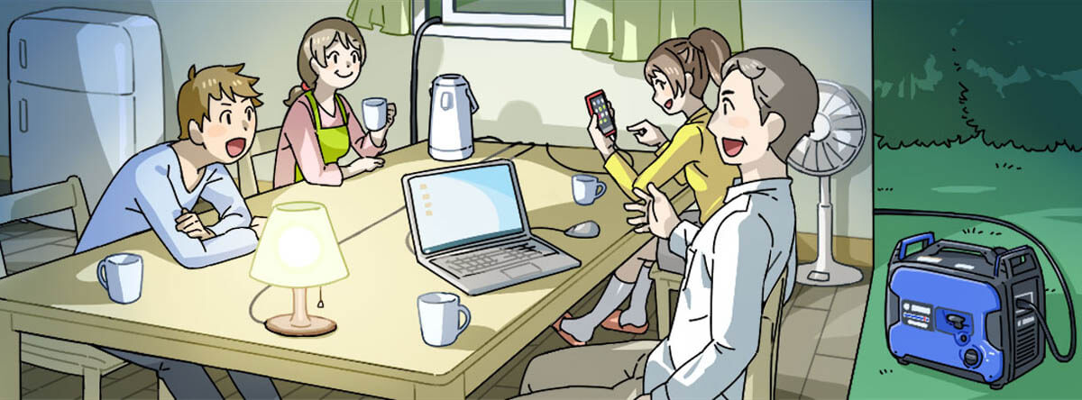 インバータモデルなら、家庭用電源と同レベルの良質な電気を供給。精密機器やマイコン制御の電気機器、蓄電池への充電にも安心して使えます。
