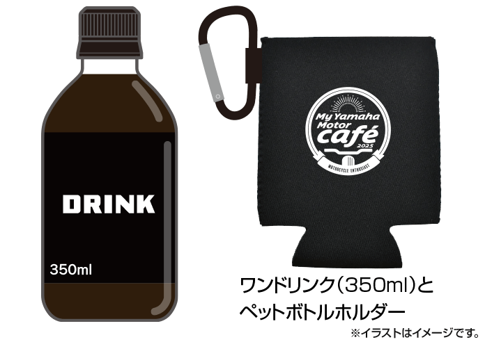 My YAMAHA Motor Web会員証を受付にてご提示していただいたお客様に、もれなくワンドリンク(350ml)とペットボトルホルダーをプレゼント!