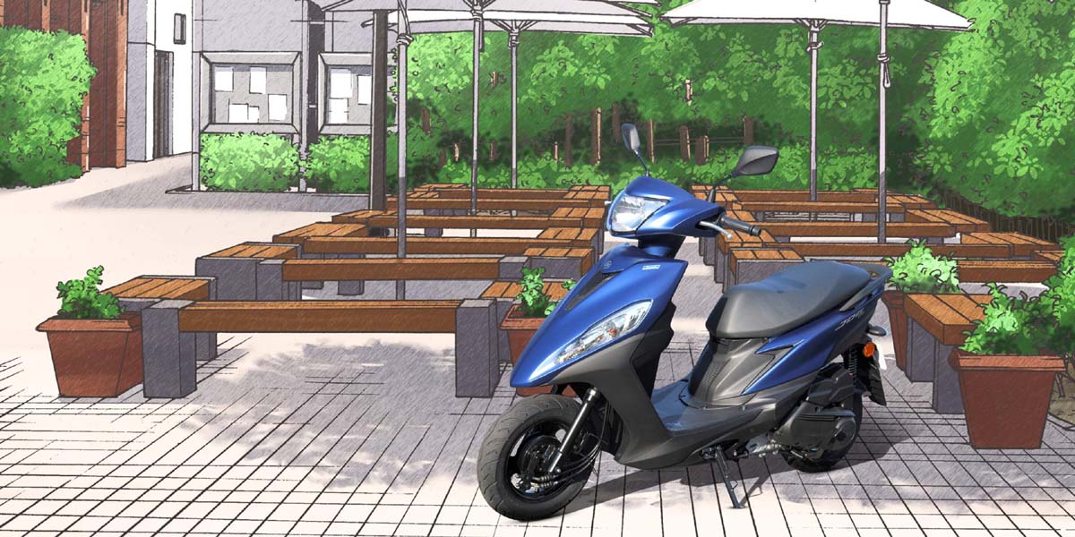 JOGらしいスポーティさを継承しつつ、軽さと取り扱いやすさを表現したコンパクトなボディに、フロントカウルと一体化したフラッシャー、そしてサイドカバーの滑らかなボディラインがダイナミックで親しみやすい印象を与えます。